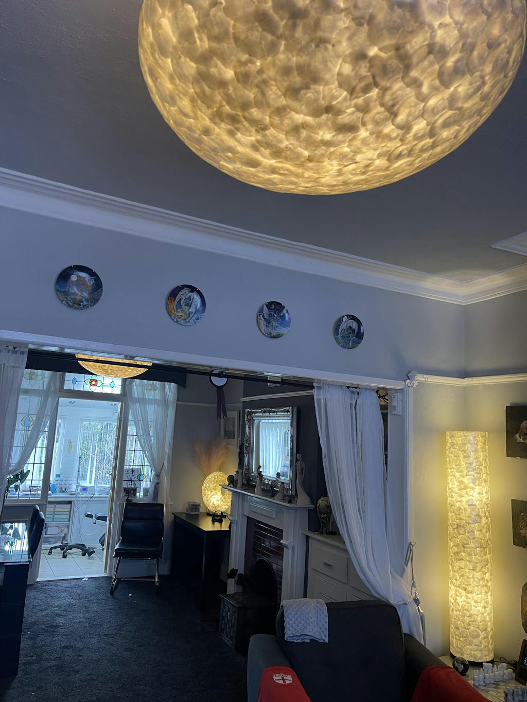 I have 4 pieces 2 large light shades. The floor lamp which is on the table and another shell lamp which my children brought me. It has changed the whole look of the room. Fabulous. Everyone comments on them. Thank you